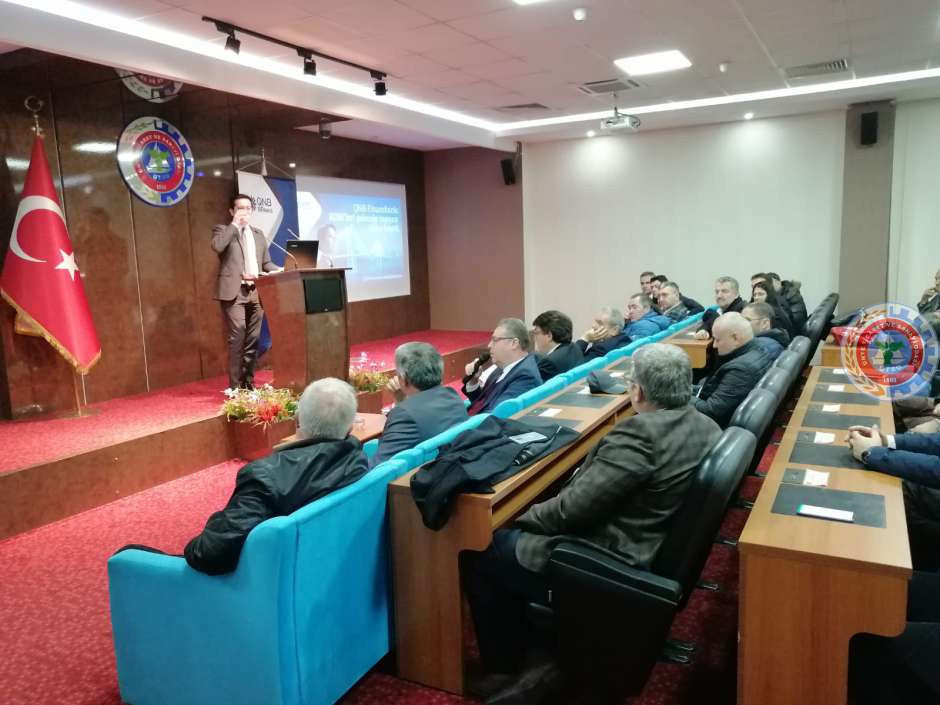 Odamız konferans salonunda düzenlenen toplantıda Başkanımız İrfan Akar ve Ordu Serbest Muhasebeci ve Mali Müşavirler Odası Başkanı Bahadır Baş e-fatura dönüşümü hakkında bilgiler verirken Ünye’de de şubesi bulunan özel bir banka yetkilileri bu dönüşümün nasıl olacağını anlattı.