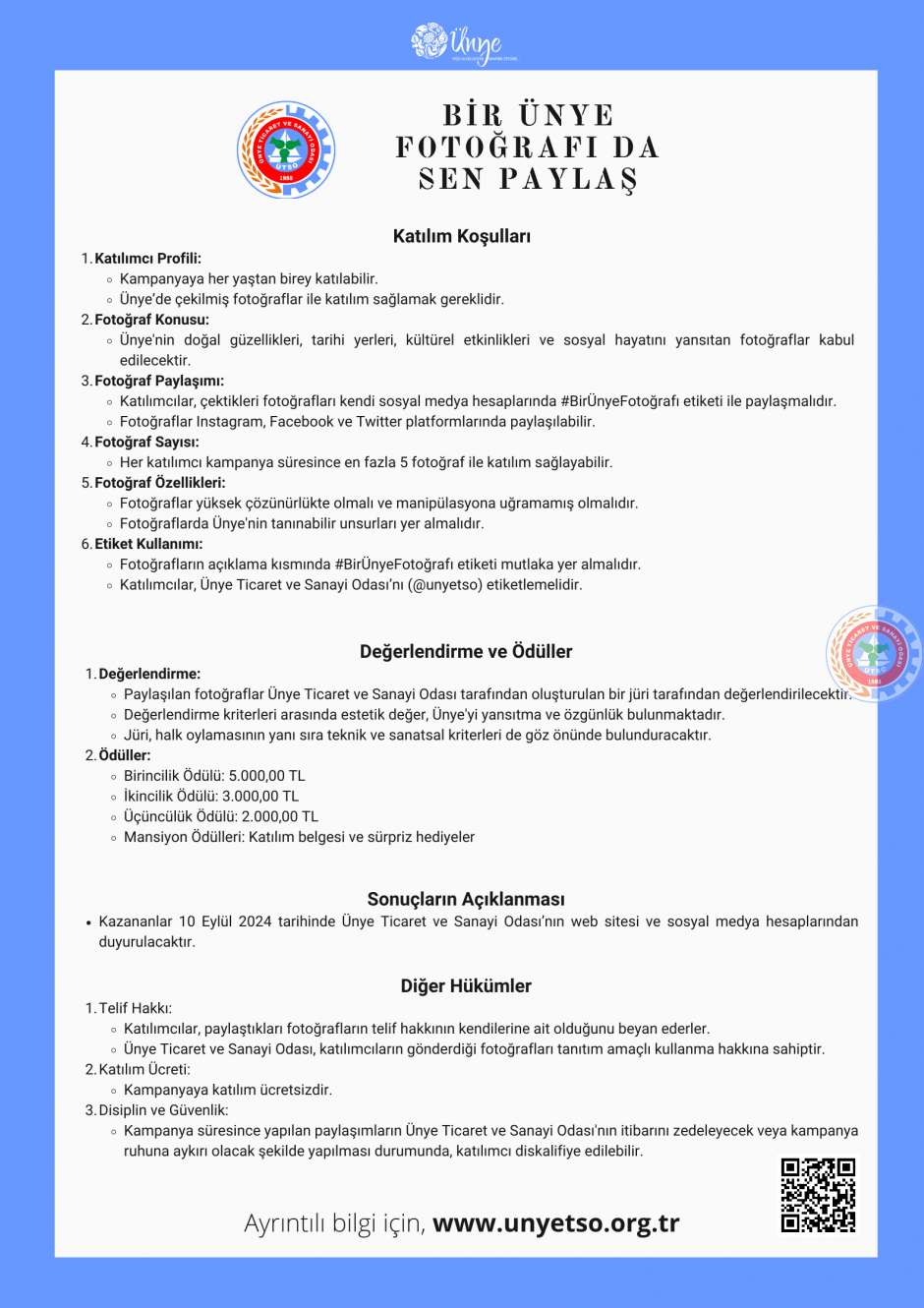 Detaylı bilgi ve katılım şartları için Ünye TSO’nun sosyal medya hesapları ve web sitesi takip edilebilir.